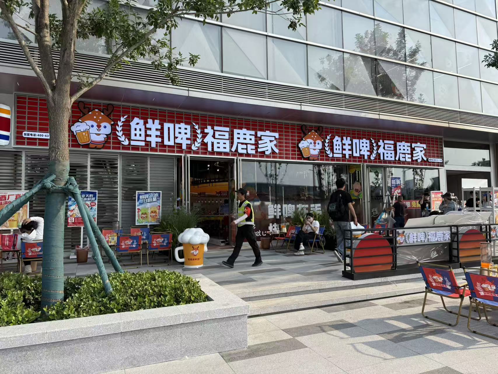 奶茶店往往強調“即買即走”的便捷性,空間設計偏向明亮、輕快,以滿足快速流轉的客羣需求;啤酒館則更注重“停留與體驗”,通過營造放鬆、氛圍感的環境,鼓勵顧客延長駐留時間,深化社交互動。但福鹿家很多窗口店都與蜜雪冰城一樣,不設座位,強調高週轉和便捷性。