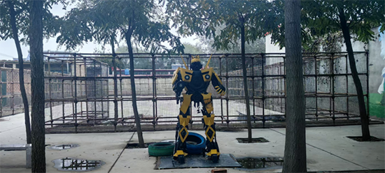 變形金剛“大黃蜂”的背後是糧食晾曬場和玉米儲藏倉,這種“土洋結合、虛實兼濟”的改造在馬家莊村很常見。