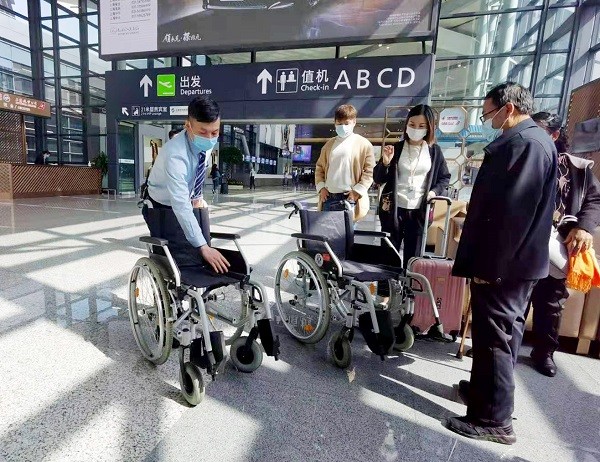 此外,許多機場推出“温馨通道”或“特別關愛”服務,針對60歲以上老人、孕婦、殘疾旅客等,提供優先值機、優先安檢、免費電瓶車接送和優先登機。這些舉措大大提升了特殊旅客的出行體驗,讓殘疾旅客出行“無障礙”。