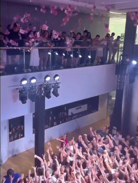 8月15日,一段影石CEO劉靖康給員工撒錢的視頻在網絡上流傳。畫面中,影石創始人劉靖康站在高一層的樓上,向樓下的員工撒錢,現場歡呼聲此起彼伏。