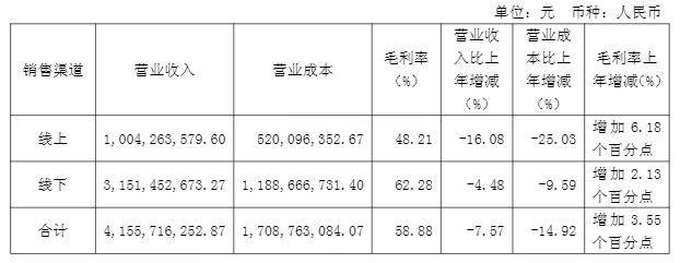 線上渠道和線下渠道毛利率的差距達到了14.07個百分點。