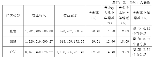 毛利率錄得微增的加盟模式相較於毛利率微降的直營模式還相差了超20個百分點。