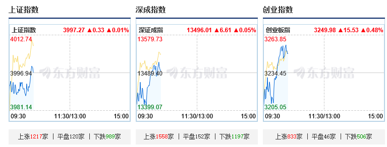 截至上午10點18分,滬指上漲0.01%,深證成指上漲0.05%,創業板指上漲0.48%。