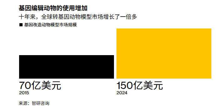 有數據顯示,2024年,全球基因改造動物模型市場估計150億美元,在十年內翻了一倍。