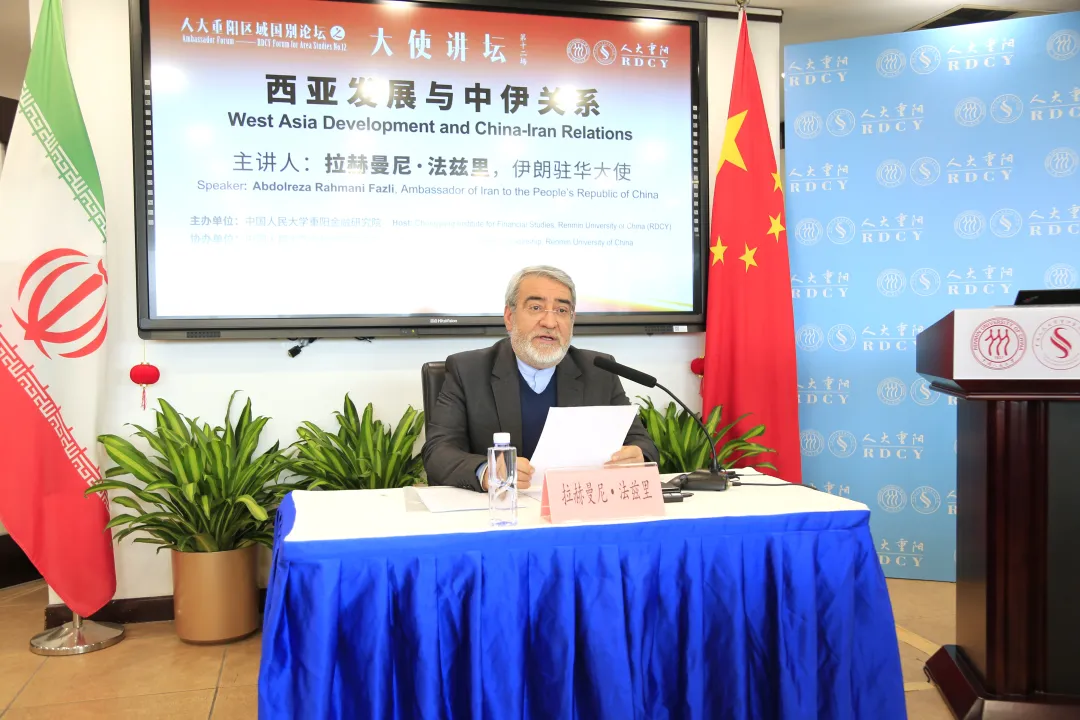 10月28日,伊朗駐華大使拉赫曼尼·法茲裏訪問中國人民大學,出席由中國人民大學重陽金融研究院舉辦的區域國別論壇之“大使講壇”第十二講並發表演講。論壇的專家研討環節由中國人民大學重陽金融研究院高級研究員周戎與中國人民大學國際關係學院教授田文林參與。會議由中國人民大學重陽金融研究院院長、全球領導力學院院長王文主持。