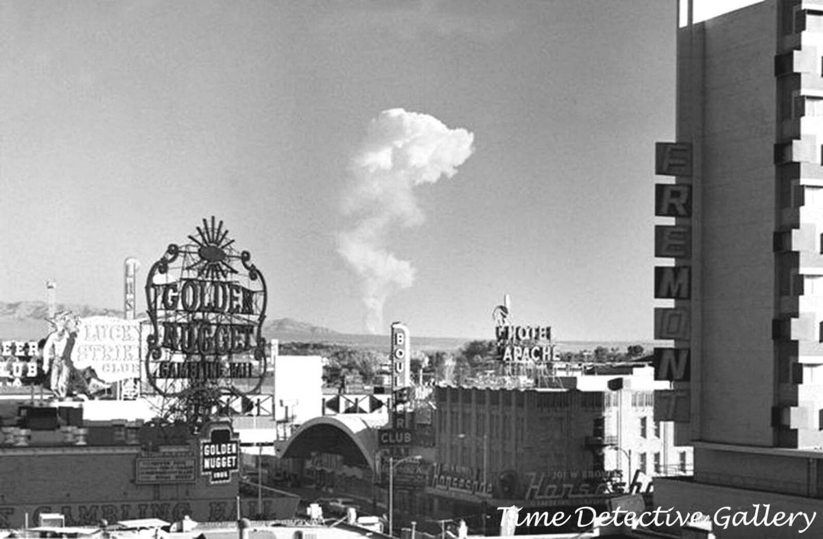 美國1950年代在內華達試驗靶場進行核試驗期間,附近的拉斯維加斯鬧市區都可以看到核彈爆炸後騰起的蘑菇雲 社交媒體