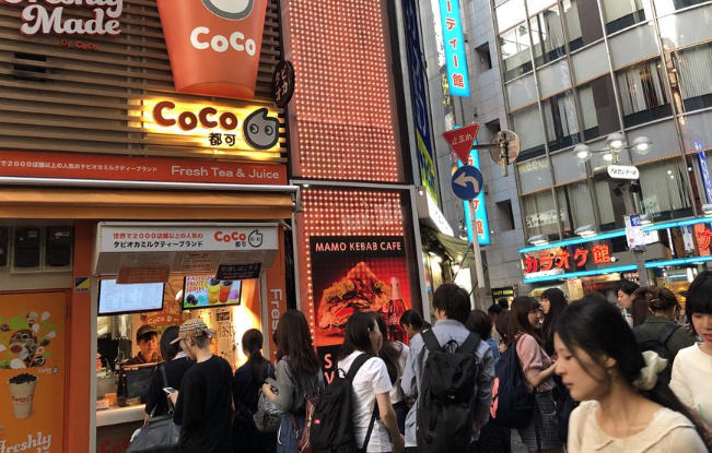 東京涉谷,當地人在CoCo(都可)奶茶店前排隊等候 社交媒體