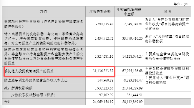 值得注意的是,第三季度2.52億元的淨利潤佔前三季度總利潤的九成以上,而扭虧的核心原因之一是委託理財到期帶來的3.11億元收益。若剔除該因素,主營業務盈利改善仍有限。