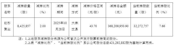 10月29日,貝泰妮公告稱,其第二大股東天津紅杉聚業股權投資合夥企業(有限合夥)(下稱“紅杉聚業”)通過大宗交易方式減持了842.59萬股,佔總股本的2%,套現3.68億。減持完成後,紅杉聚業的持股比例降至7.66%。