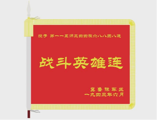 簡介:八路軍第115師344旅688團8連,前身為紅25軍75師225團一部。1943年春,在反“掃蕩”、反“摩擦”戰鬥中,與抗日根據地軍民一起粉碎日軍的“總體戰”,打退漢奸土頑的進攻襲擾。在陳樓村戰鬥中,8連擔任主攻,從東南角打進陳樓村,為後續部隊打開通路,最終全殲守軍。戰後,冀魯豫軍區授予該連“戰鬥英雄連”榮譽稱號。