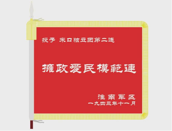 新四軍淮南軍區來口獨立團第2連,在大生產運動中發揚不怕苦、不怕累作風,開墾荒地,種菜種糧,將生產所得無償援助給抗日根據地羣眾,分組包乾幫助羣眾恢復生產,與當地百姓結下魚水深情。作戰時,連隊充分發動羣眾,在羣眾掩護下多次對日偽軍進行襲擊。1943年11月,淮南軍區授予該連“擁政愛民模範連”榮譽稱號。