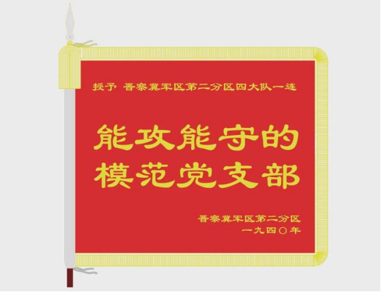 簡介:晉察冀軍區第2軍分區4大隊1連,前身由1937年地方游擊隊改編組成。1940年反“掃蕩”鬥爭中,晉察冀軍區第2軍分區4大隊1連在黨支部的堅強領導下,隨主力部隊攻克大峪口,襲擊回龍梁、閻家嶺、南坪、徐家莊等據點日軍,破壞部分公路和電線設備,並擊退日軍多次進攻。戰後,晉察冀軍區第2軍分區授予該連黨支部“能攻能守的模範黨支部”榮譽稱號。
