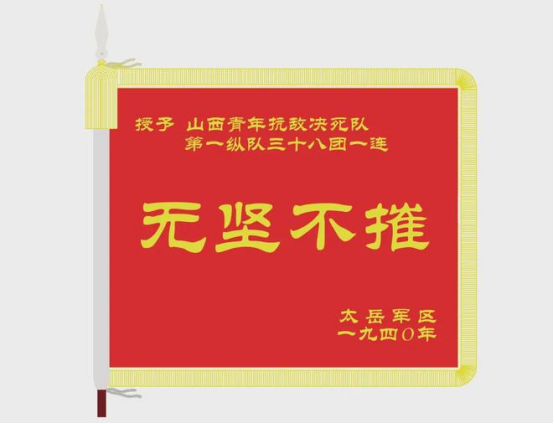 簡介:山西青年抗敵決死隊第1縱隊38團1連,誕生於1937年8月1日,國民兵軍官教導第8、第9團的部分官兵組建的為基礎。1940年8月至9月,在百團大戰正太戰役中,山西青年抗敵決死隊第1縱隊38團1連隨團攻打上湖車站周圍日軍據點,利用夜暗突入日軍陣地,及時打開進攻通路。隨即全連發起攻擊,對各碉堡內的日軍進行地毯式清除,繳獲軍用物資一批,為奪取上湖車站提供了有力支撐。戰後,太嶽軍區授予該連“無堅不摧”榮譽稱號。