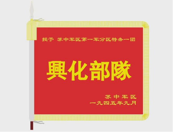 簡介:新四軍蘇中軍區第1軍分區特務1團,前身最早追溯到1938年在江陰一帶組建的抗日遊擊隊。1945年8月,在收復興化城戰鬥中,新四軍蘇中軍區第1軍分區特務1團擔負主攻東門任務。戰鬥中,1團組織勇敢隊,冒着偽軍密集炮火,克服重重困難,遊過護城河,迅速架梯登上東門城樓,與偽軍展開肉搏,為後續部隊突進興化城殺出一條血路。戰後,蘇中軍區授予該團“興化部隊”榮譽稱號。