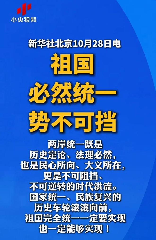 大家是不是也能感覺到統一進程已經開始了?最近還發生了好幾件事:第一是10月25日在法律意義上被正式確認為“台灣光復紀念日”。這是在向國際上宣示,台灣早已光復,早就是我們家的,沒有爭議。用這個事實在法理上證明台灣已經是我們的一部分了,台灣事務是我們家裏的事。第二是重慶公安機關對“黑熊學院”組織人員沈伯洋進行了通緝。第三,新華社連續三天發佈署名文章,在輿論場上強調祖國必然統一勢不可擋,並且出現了“迴歸祖國有七大好處”之類的提法,與之相伴的還有東部戰區同步推進的演習。