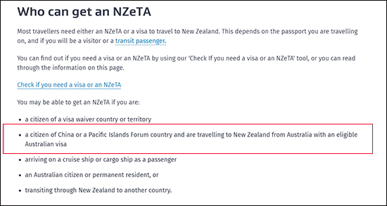 中國公民持有效澳大利亞簽證今起可免簽入境新西蘭