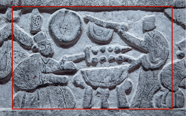 山東臨沂五里堡漢畫像石《庖廚圖》,有一人燒烤,一人持扇扇風