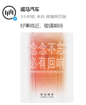 【文/觀察者網 潘昱辰 編輯/高莘】11月3日,自2023年起停工停產至今的威馬汽車發佈了一則微博,稱“好事將近,敬請期待”“念念不忘,必有迴響”。