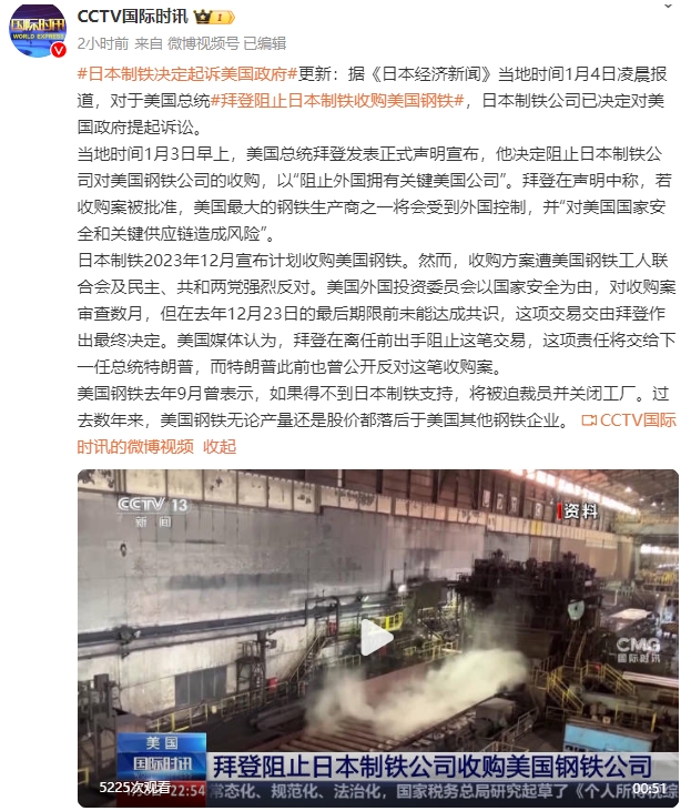 日媒:拜登阻止日本製鐵收購美國鋼鐵公司,日本製鐵決定起訴美國政府