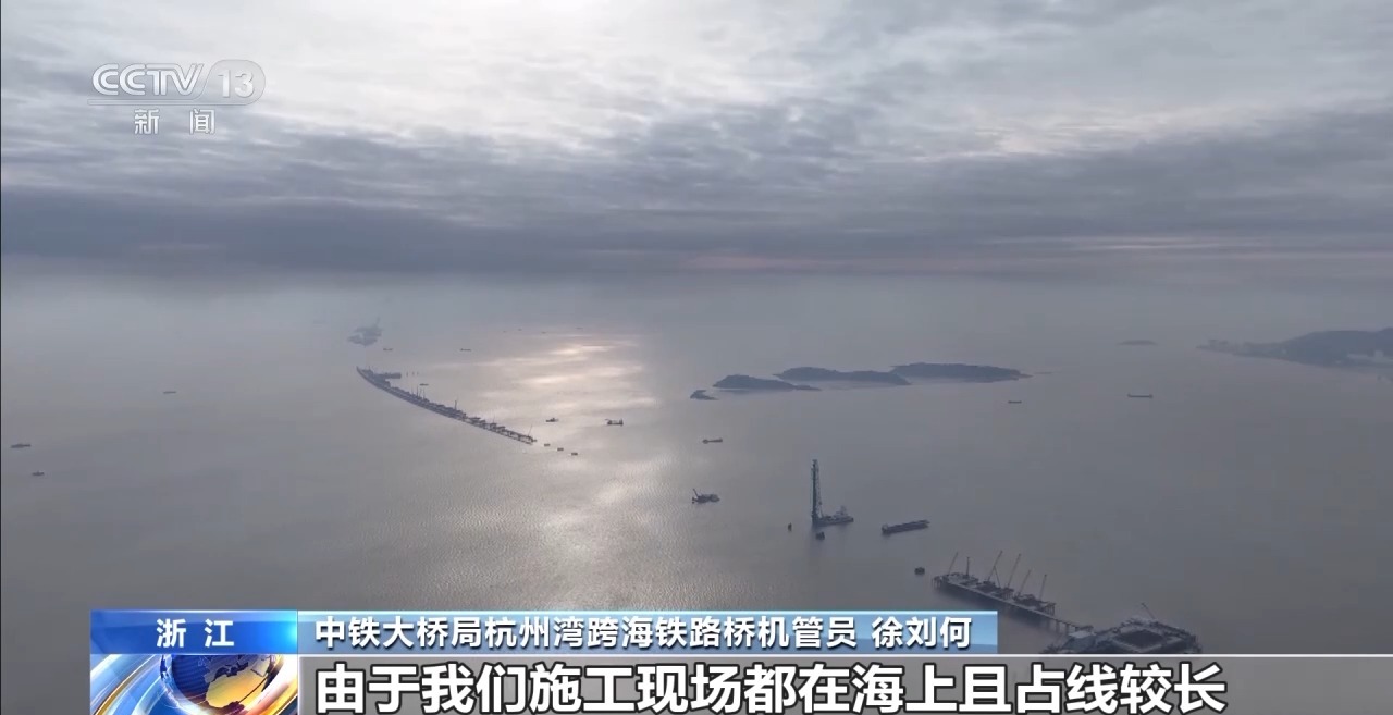 中鐵大橋局杭州灣跨海鐵路橋機管員 徐劉何:一畢業就能到這樣世界級的項目上,我覺得很幸運,也有很多挑戰。由於我們施工現場都在海上且佔線較長,所有的人員、物資、設備等都需要船舶來運輸,同時現場大型吊裝作業也需要船舶配合完成。施工海域水深特別淺,如何做好船舶組織管理併合理運用,是我們每天都要考慮的事情。