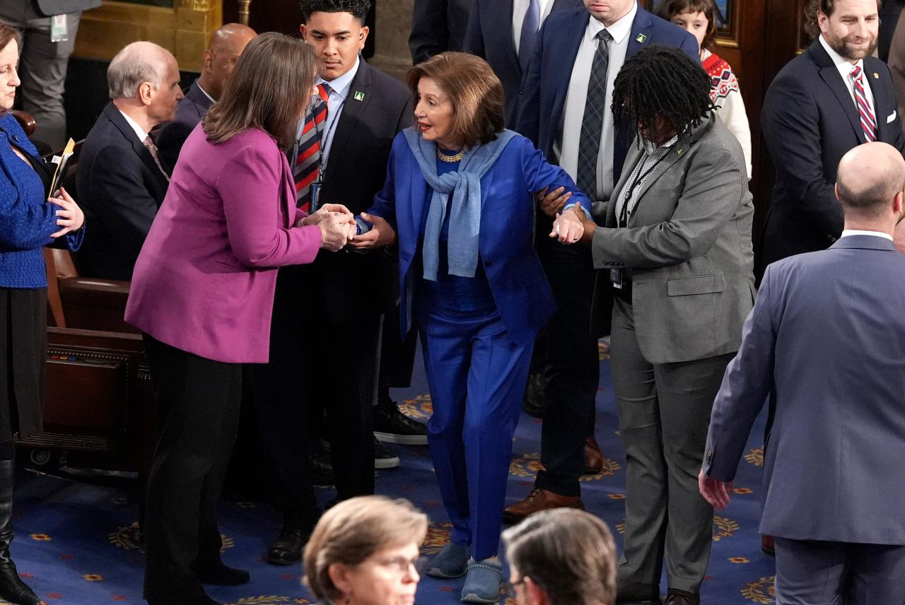 【環球網報道】據美國《紐約時報》等媒體報道,在接受髖關節置換手術幾周後,美國前眾議院議長南希·佩洛西今年1月3日上午首次重返美國國會眾議院會議廳。這家美媒注意到,佩洛西放棄了她標誌性的“四英寸高跟鞋”,換了雙平底鞋露面。