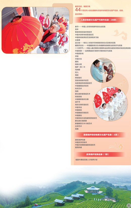 隨着春節申遺成功,世界的目光再次聚焦中國非遺。截至目前,我國共有44個項目列入聯合國教科文組織非物質文化遺產名錄、名冊,這些非物質文化遺產,藴含着中國人千百年來生產生活的技藝與經驗,體現了中國精神中國價值,成為世界認同和欣賞的中華文化符號。