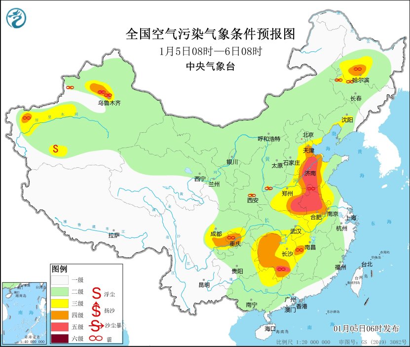 另外,在冷空氣和雨雪天氣到來前,華北南部、黃淮中西部、江南西部、四川盆地南部等地大氣擴散條件較差,部分地區有輕至中度霾,外出時需注意防護。