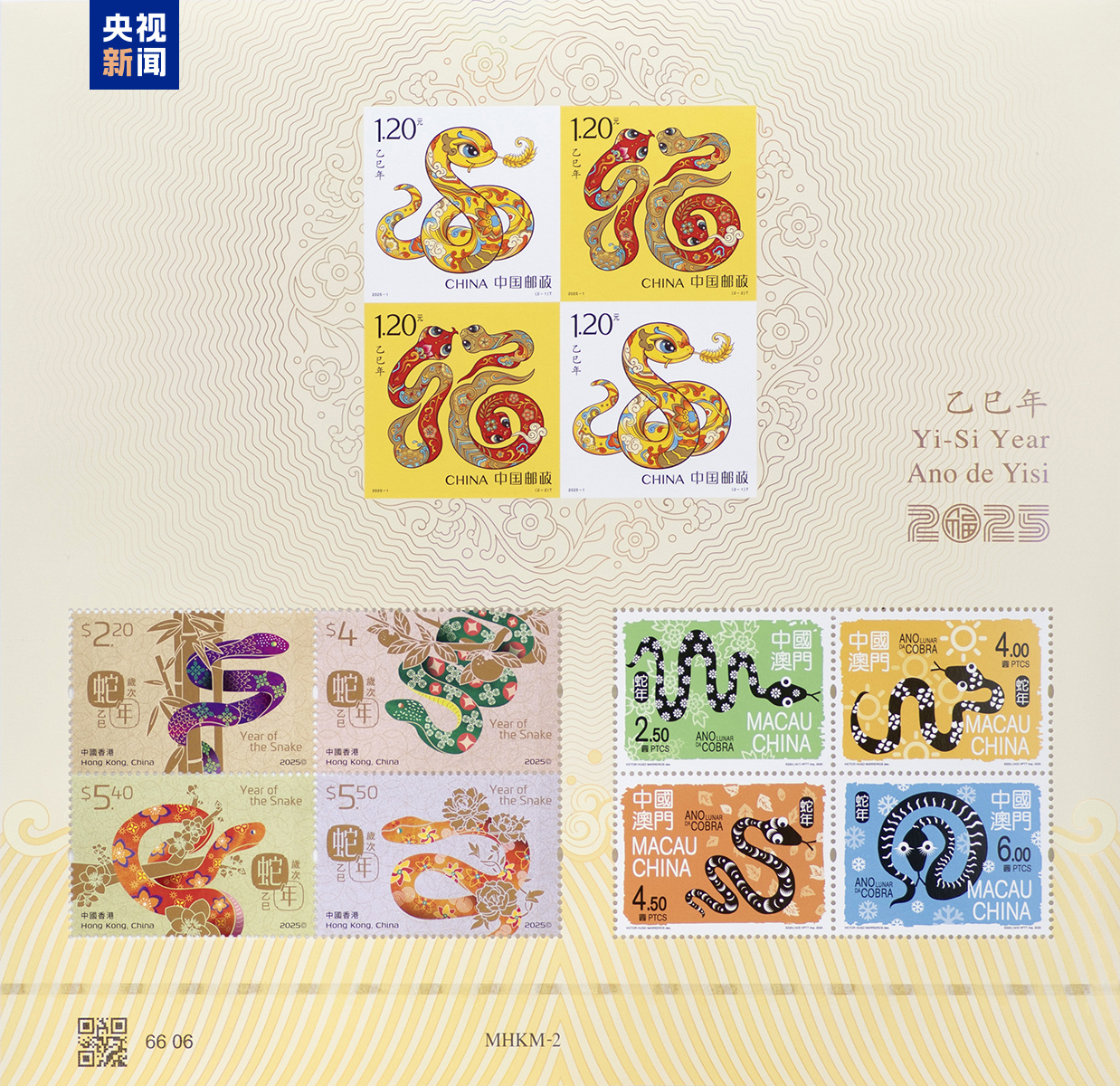 今天,中國郵政發行了《乙巳年》特種郵票,這也是我國發行的第四輪生肖郵票。此外,中國郵政和香港、澳門郵政部門共同印製的生肖同題材郵票三地小全張今日同步發行。