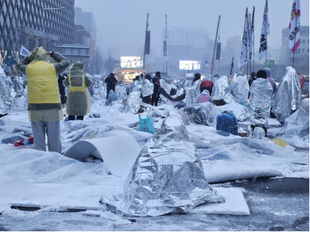 最新!韓媒:尹錫悦逮捕令有效期臨近,數千名韓民眾在大雪中身披保温毯堅持集會