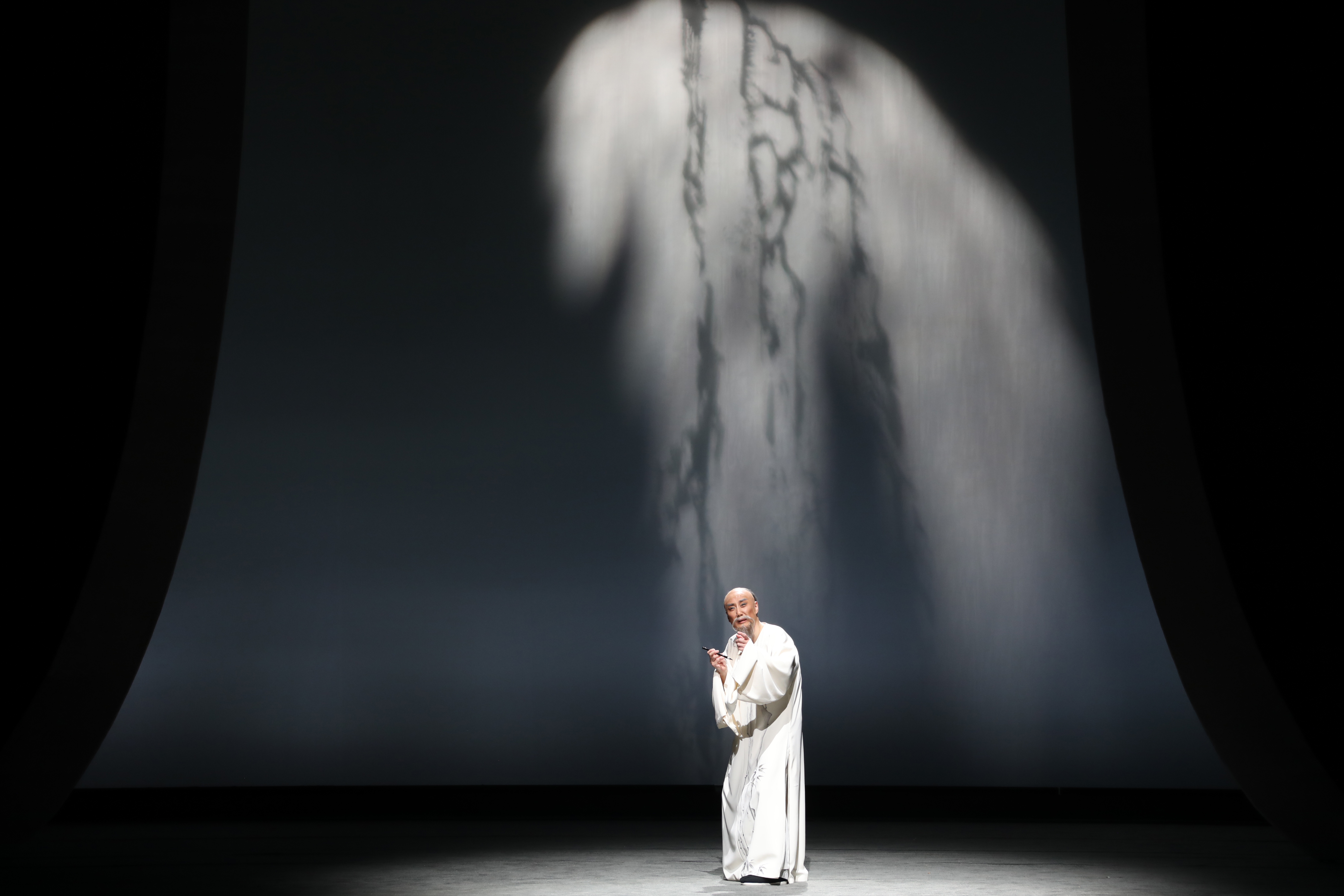 劇場裏,舞台的空間設計為觀眾提供深刻的審美體驗。舞台既保留了傳統戲曲“一桌二椅”的簡約美學,又緊扣揚州園林特徵,運用黑白對比色調和光影變幻,隱喻鄭板橋內心澄澈與光明,使其性格直觀生動地傳達給觀眾,讓物理空間成為精神外延。