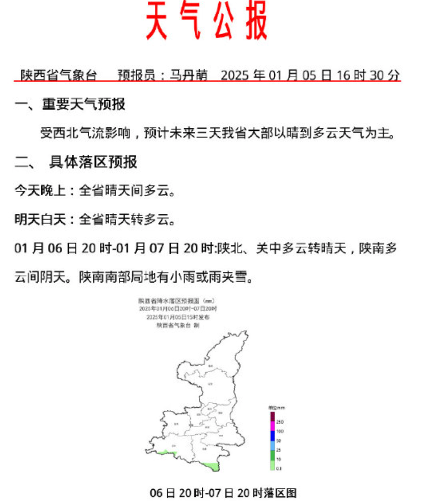受西北氣流影響,預計未來三天我省大部以晴到多雲天氣為主。陝南南部局部有小雨或者雨夾雪。
