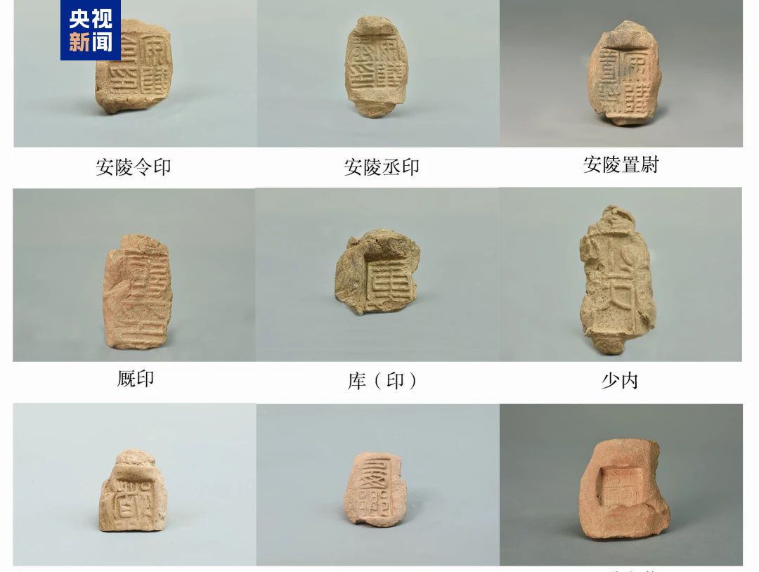 發掘中出土封泥665枚,集中發現於18座灰坑中。封泥多與漢陽陵邑出土C式封泥相同,少量背部見有竹、木檢痕或封壓囊類軟物痕跡。印文內容可分為安陵邑屬官,專門機構,縣以下基層組織,私印,其它等五類,多為首次發現的新見品,其中以安陵邑屬官、縣以下基層組織最多。所見安陵屬官有“安陵令印”“安陵丞印”“安陵右尉”“安陵置尉”等;專門機構均為倉儲職能相關如“少內”“庫印”“倉印”“廄印”等;下轄鄉名見有“西鄉”“中鄉”“北鄉”“都鄉”等,以“西鄉”發現最多。