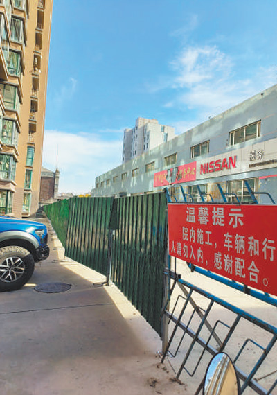 在內蒙古呼和浩特市賽罕區吉美家園,一排臨時圍擋將小區的消防通道堵了起來(見圖②)。“2023年5月,小區2號樓南側豎起了一排鐵皮圍擋。説是南側的廠房要拆遷,但是到現在遲遲未動工。這排鐵皮圍擋與2號樓南側距離不足1米,消防車怎麼過得去?萬一發生火情怎麼辦?”小區居民李先生説,對於該問題,小區居民多方反映,但始終未能解決。