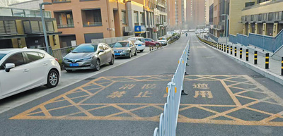 在遼寧大連市甘井子區中華城領匯小區北門,兩排地樁和一條長長的隔離欄杆將原本暢通的消防通道隔開了(見圖③)。“小區北門這條路本來就不寬,小區物業公司荷原物業在便道上打了一排地樁,在馬路中間又豎起了隔離欄杆。”小區居民劉女士説,“根據消防規定,消防通道寬度不能低於4米,現在明顯不足4米寬。而且,因為這些欄杆的存在,真要發生火災,消防車要繞路掉頭才能進入小區。”