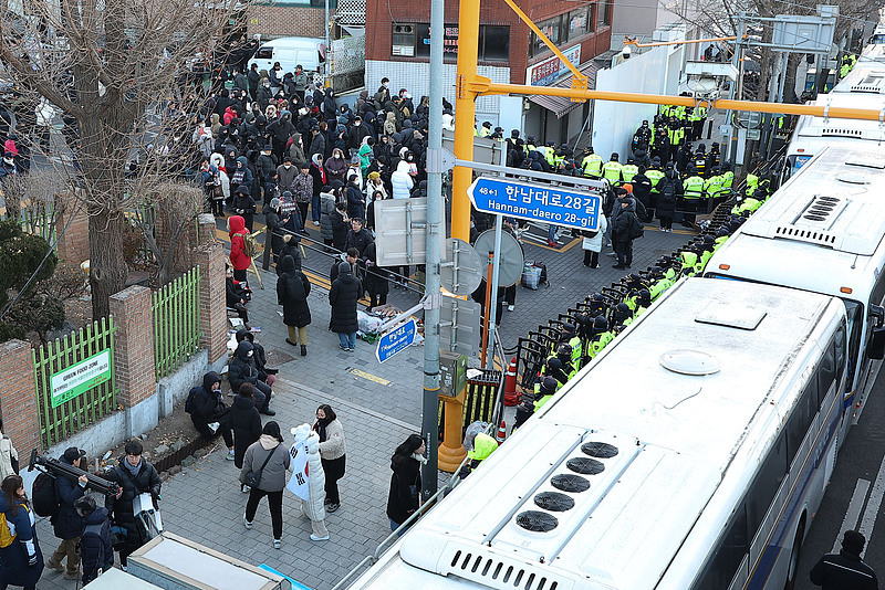 △1月3日,位於韓國首爾的總統官邸外,韓國公調處調查人員當天進入總統官邸,嘗試逮捕尹錫悦。