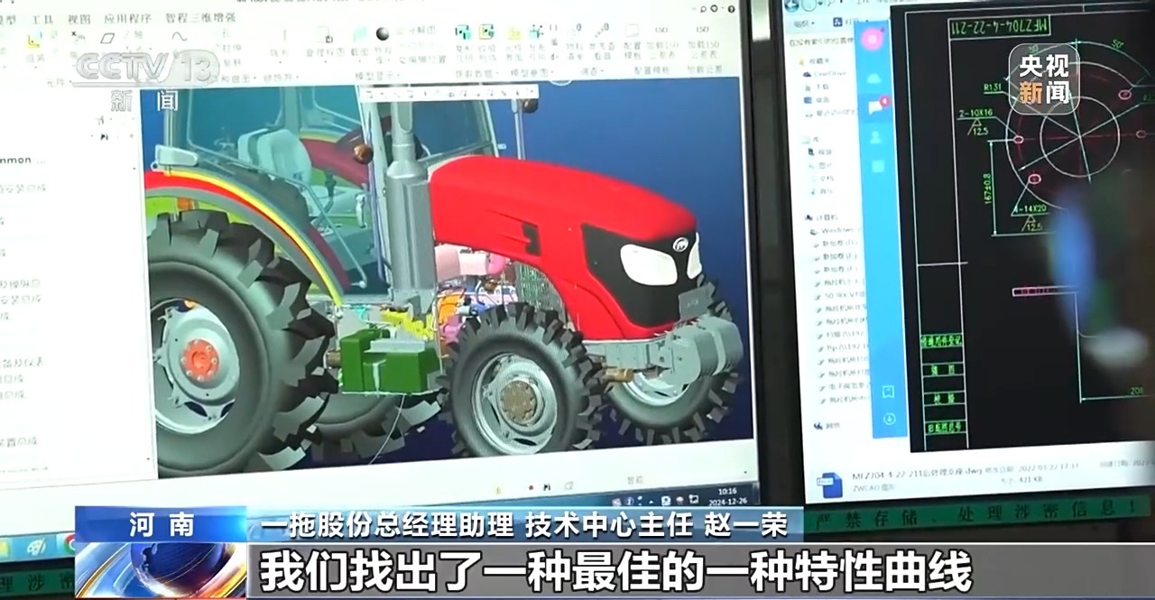*一拖股份總經理助理、技術中心主任 趙一榮:*泵馬達的特性曲線,我們做了上億次數據採集實驗,大概總共做了3個月,我們找出了最佳的一種特性曲線來滿足0到40公里無級變速。