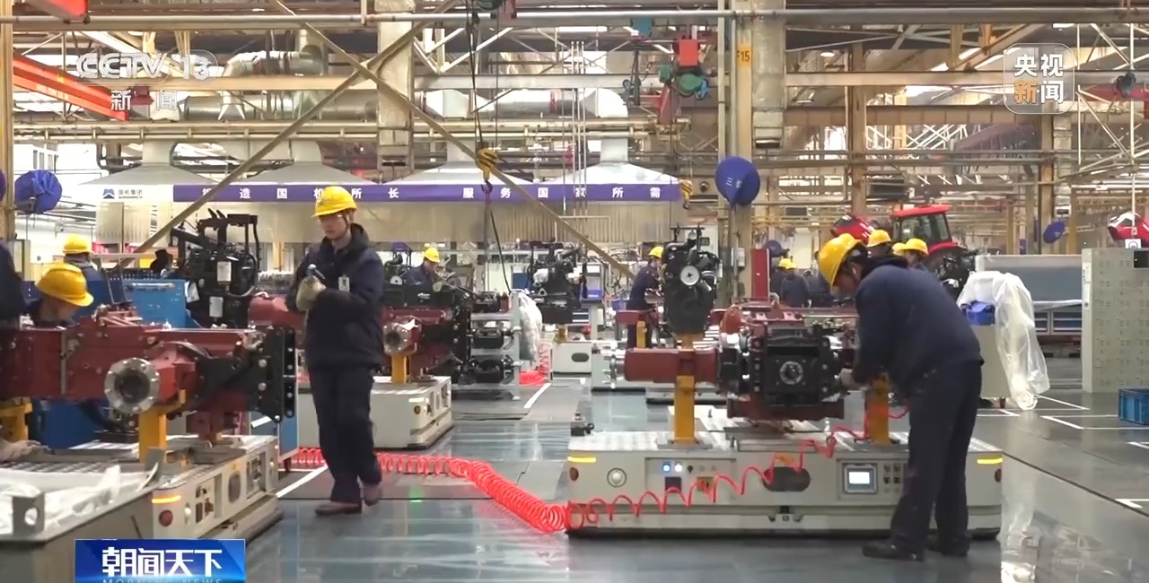 *總枱央視記者 張琪:*這條生產線上,150秒就能下線一台200馬力的大型拖拉機,一天就能生產200台大型拖拉機。這樣的生產力,得益於我目光所及的智能生產系統。