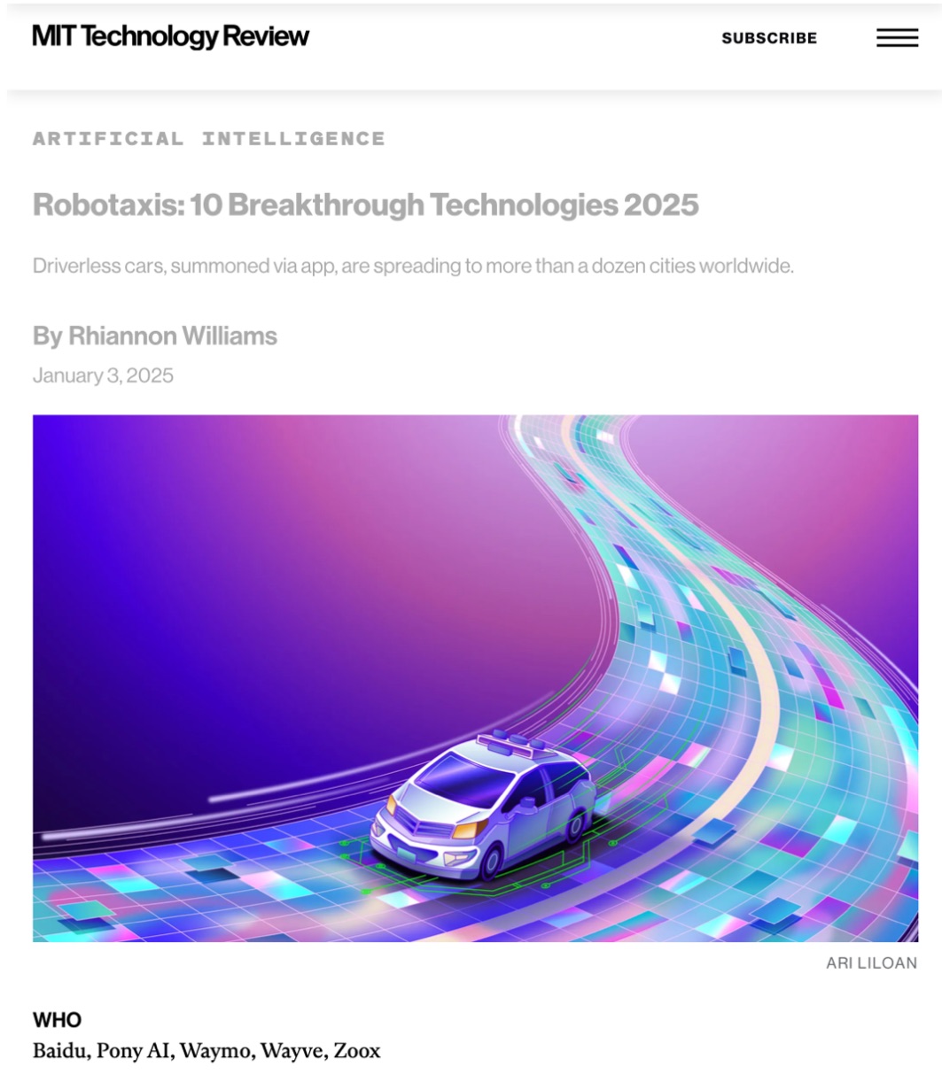 《麻省理工技術評論》發佈2025十大突破性技術:百度自動駕駛入選
