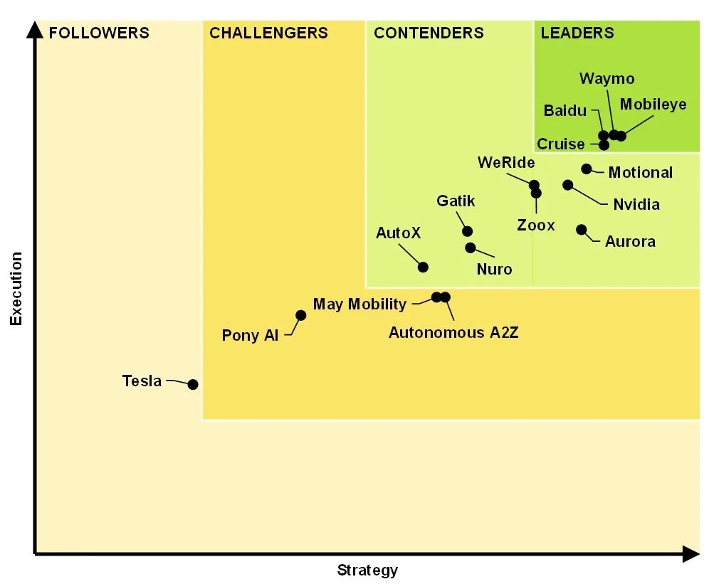 不僅僅是《麻省理工技術評論》對百度自動駕駛技術予以認可,公共及商業諮詢公司 Guidehouse 發佈的自動駕駛競爭力榜單也顯示,百度連續兩年穩居國際自動駕駛“領導者”陣營,並且是領導者行列唯一上榜的中國玩家。