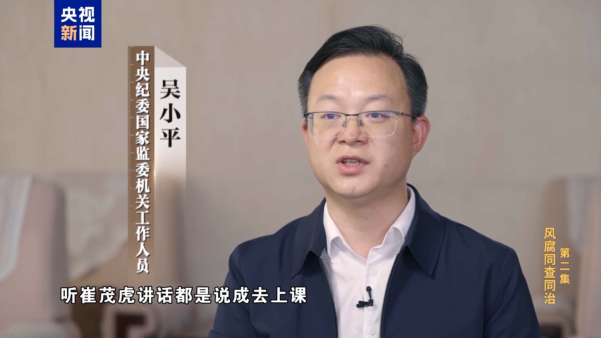 *中央紀委國家監委機關工作人員 吳小平:*崔茂虎特別能講,講起工作來都是長篇大論的,所以麗江當地一些幹部每次去開會,聽崔茂虎講話都説成去上課,去聽崔老師講課,實際上散了會就開始到別墅裏面跟商人老闆在一起吃喝玩樂。