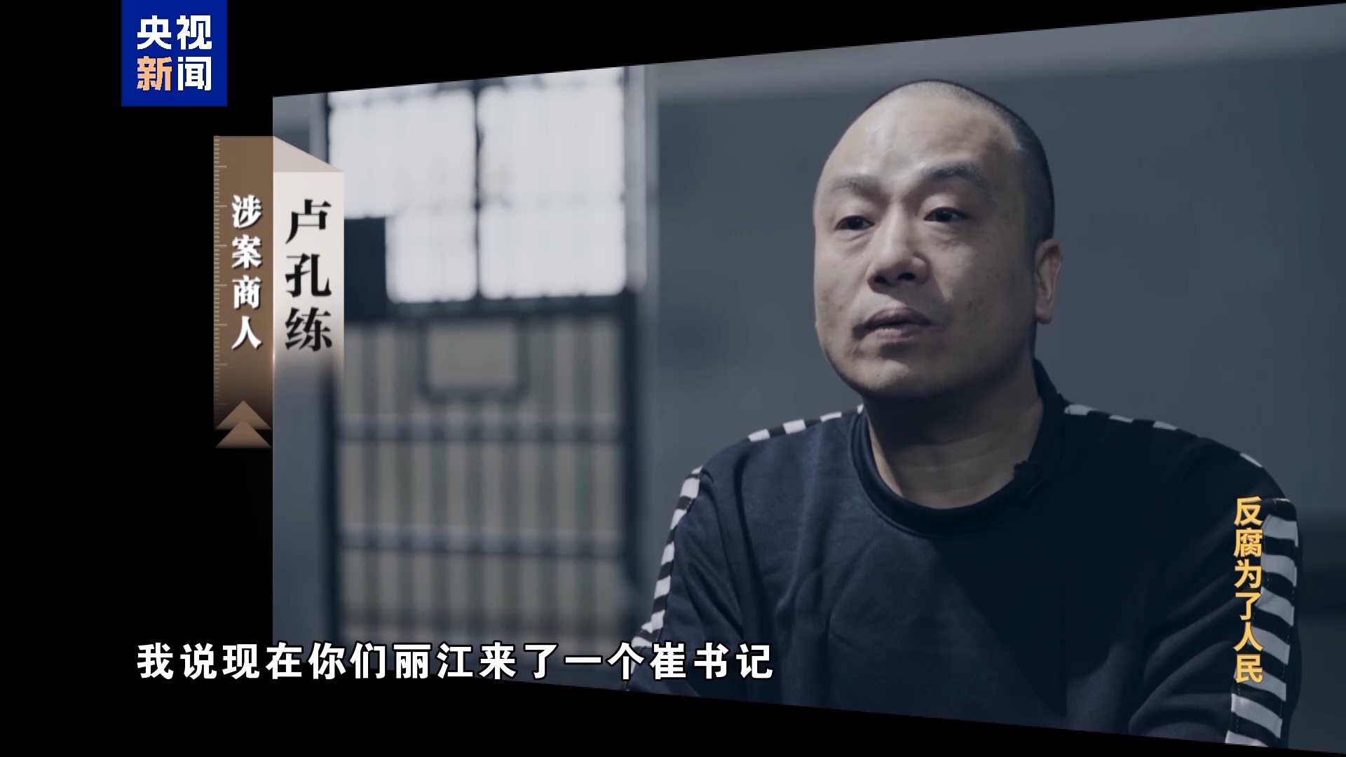 涉案商人 盧孔練:在出租車上我就跟司機聊天,我説現在你們麗江來了一個崔書記。出租車司機他説的很難聽,正事不幹,天天打牌,他就跟我説嘛。我聽到這個話我就(心想)不好,我説你怎麼知道?(他説)麗江誰不知道,大家都知道。