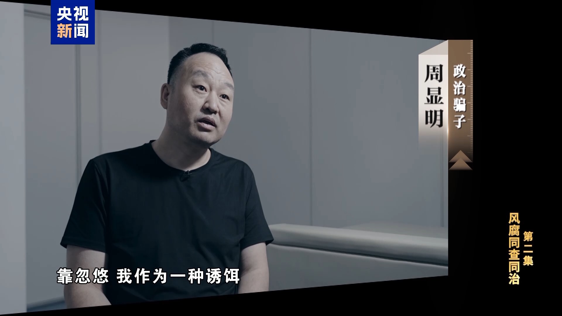 *政治騙子 周顯明:*靠忽悠,我作為一種誘餌,就是我説我認識領導,因為他們本身心裏有一種需求,我應對這種需求,我忽悠他。