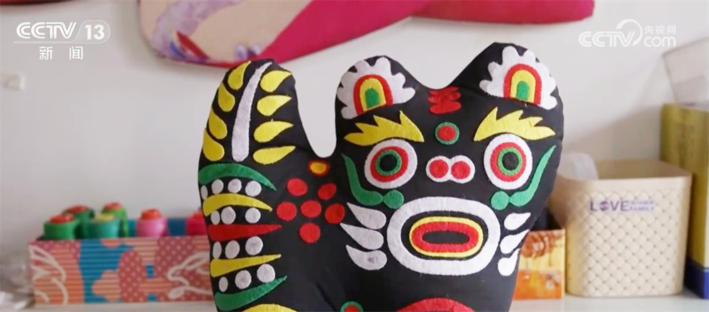 在魯山縣的一家布老虎工作室裏,幾名手藝人正專注地穿針引線,形態各異的布老虎成品堆滿了箱子。