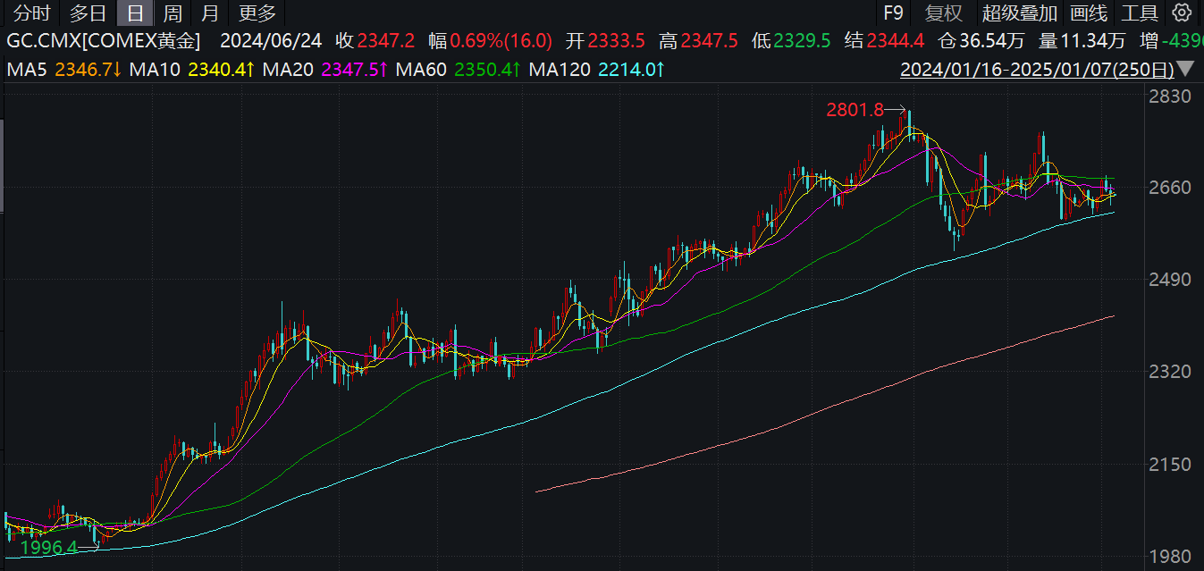 【環球網財經記者 田剛】2025年1月6日,國際貴金屬期貨收盤漲跌不一,COMEX黃金期貨跌0.29%報2647美元/盎司,COMEX白銀期貨漲1.4%報30.485美元/盎司。