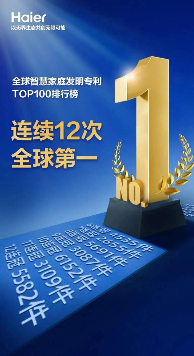 12連冠!海爾智家再獲全球智慧家庭發明專利榜NO.1