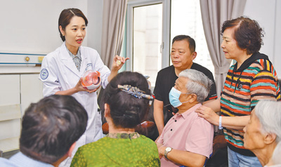 山東省濟南市第二人民醫院醫生為患者和家屬講解人工晶體國家集採政策。
