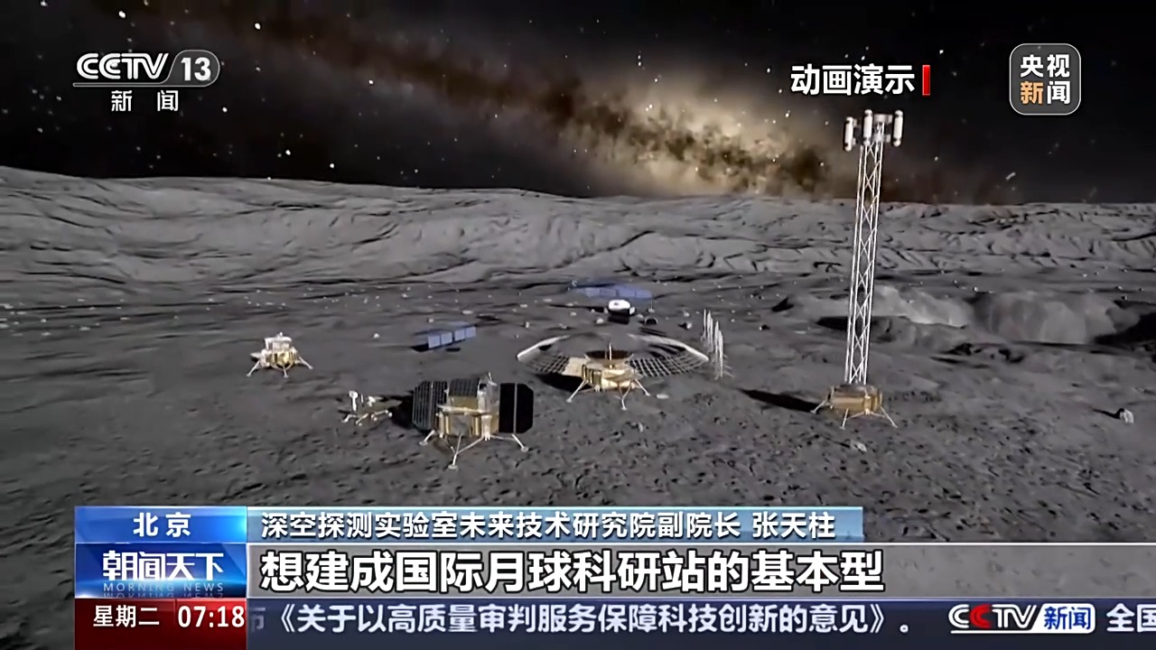 *深空探測實驗室未來技術研究院副院長 張天柱:*我們的目標是想建立一個在月球表面和月球軌道,建成長期自主運行和短期有人蔘與的可持續、可擴展的綜合性科學實驗設施,在2035年左右想建成國際月球科研站的基本型。