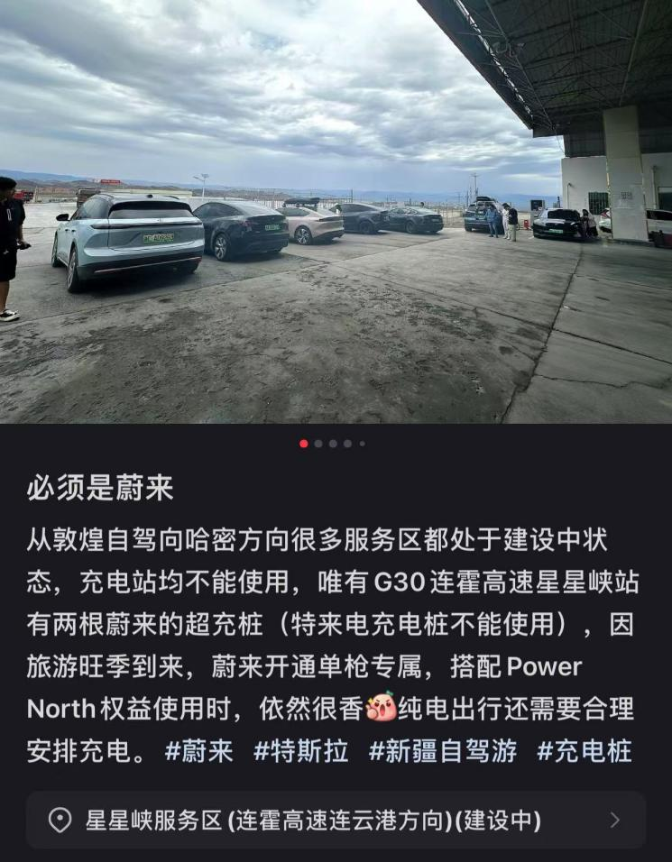 為了讓更多新能源汽車用户可以達到更遠的地方,蔚來在偏遠地區建設充電設施,解決用户燃眉之急。