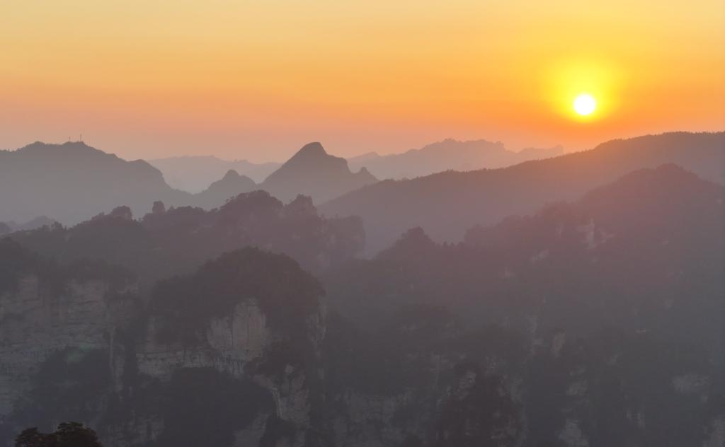 2025年1月1日拍攝的湖南張家界國家森林公園黃石寨日出景象(無人機照片)。新華社發(吳勇兵攝)