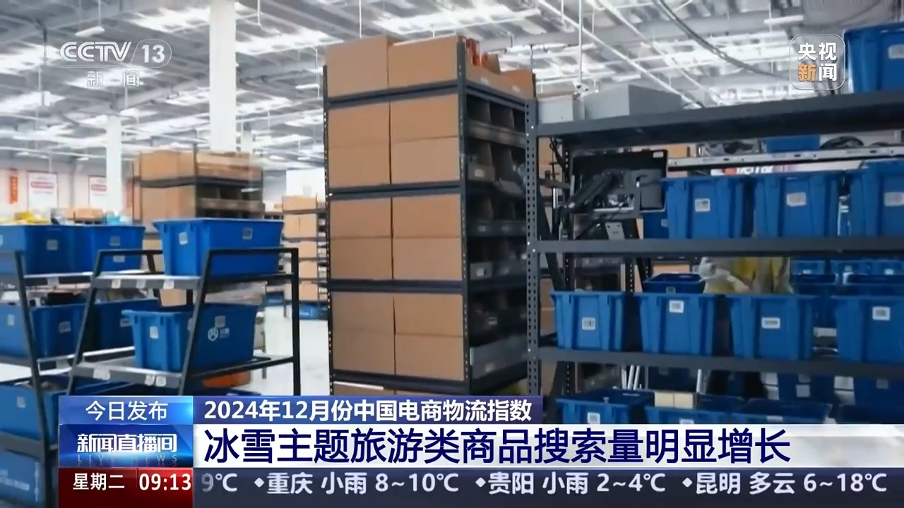 2024年12月份中國電商物流指數為112.7點,較上月回落2.8點。從需求來看,總業務量指數仍保持30%以上的增幅,線上消費市場在衣食住行等各方面呈現出濃厚的節日色彩,燈籠、對聯等新春裝飾類產品佔比增多。與此同時,冰雪主題旅遊類商品搜索量明顯增長。
